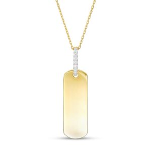 Wear your values with pride with this statement-making diamond pendant. Crafted in warm 10K gold, this petite tag features the word inscribed vertically along the center. Diamonds line the bail for a hint of sparkle. Captivating with 1/20 ct. t.w. of diamonds and a bright polished shine, this pendant suspends along a 16.0-inch cable chain with 2.0-inch extender that secures with a spring-ring clasp. This exclusive fine jewelry collection inspires you to wear your strength, confidence and power.